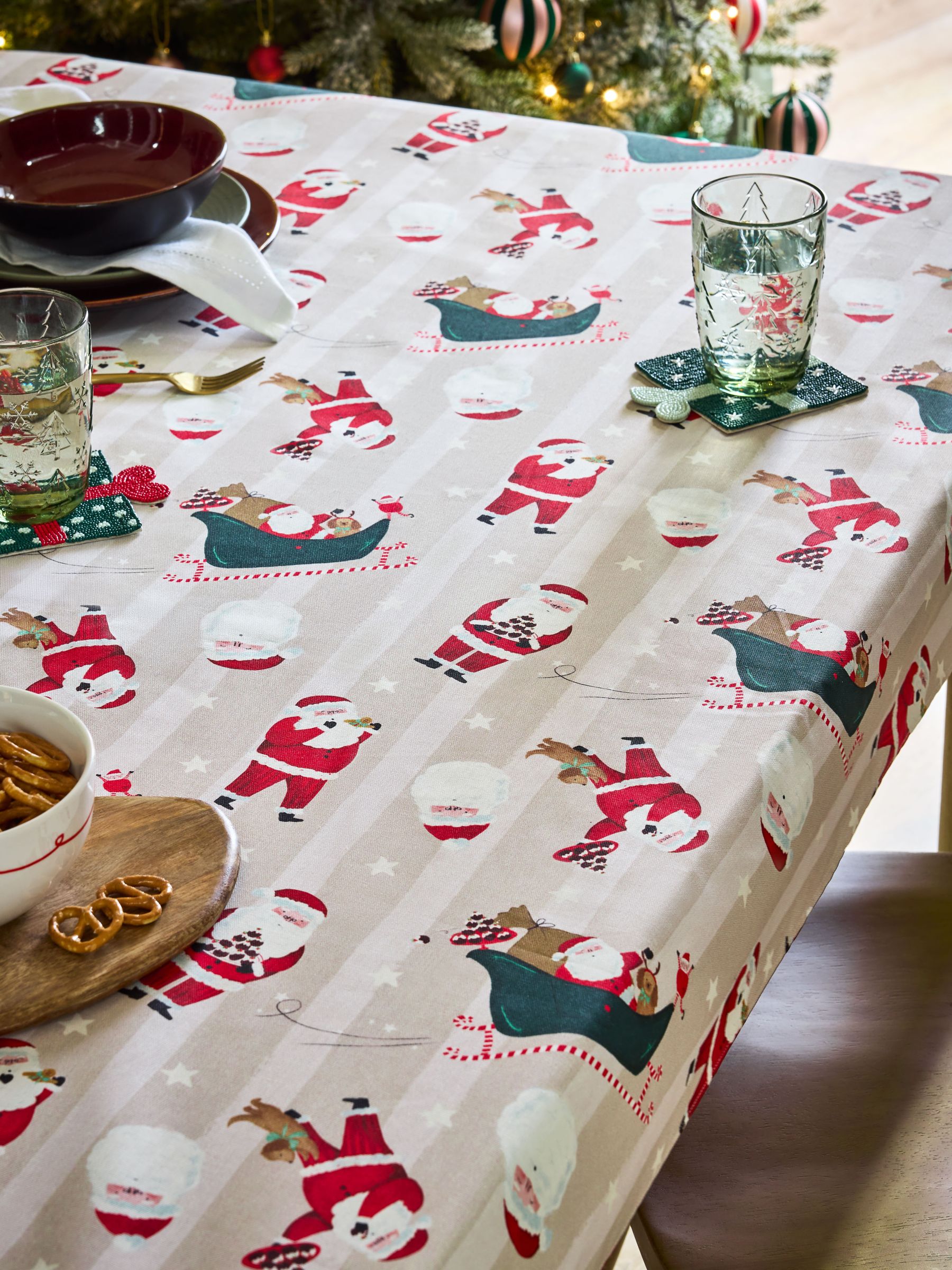 Bring charming festive cheer to your table with this delightful Santa and Friends printed tablecloth. Made from 100% cotton with a practical wipe-clean coating, it's perfect for everyday spills and can also be machine washed for easy care, making it ideal for a joyful and fuss-free festive season.