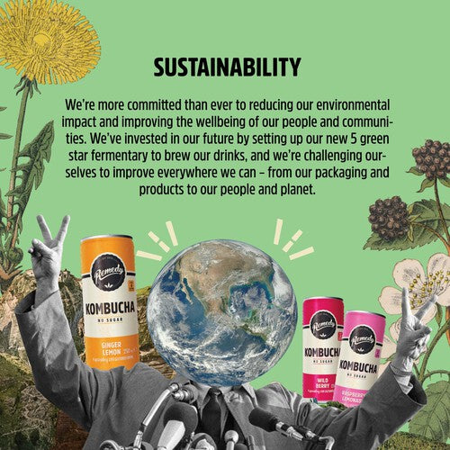 Just 4 calories per can, A sparkling live cultured drink, Delicately brewed for 30 days, Our kombucha is authentic and handcrafted, Fizzy and refreshing, No Sugar, Sparkling live cultured, All-natural Ingredients, Our kombucha is raw, vegan & unpasteurised