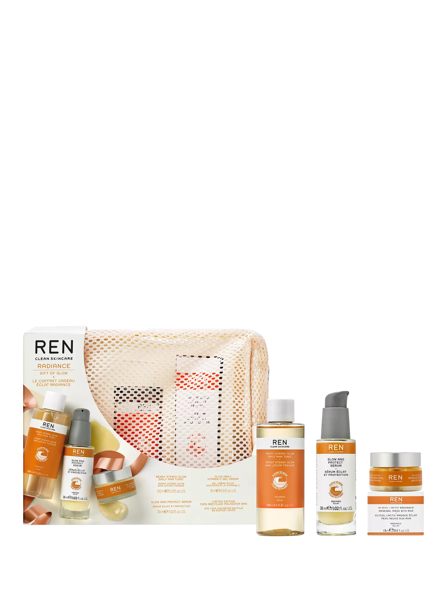 Gift the ultimate glowing complexion with this brightening bestseller trio and a limited edition 100% recycled cosmetics bag.