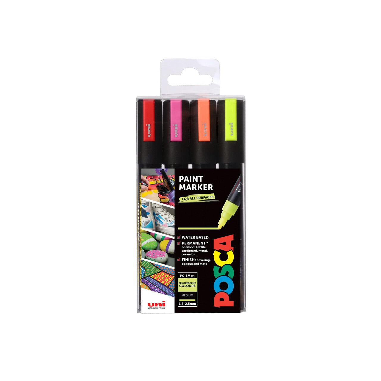 The Posca PC-5M features a medium tip, establishing it as the most versatile in the POSCA pen range for drawing and crafting. This specific tip size allows for both detailed line work and broader colour application with consistency. It is highly regarded by both professional artists and hobbyist amateurs seeking reliable, vibrant pigment.
