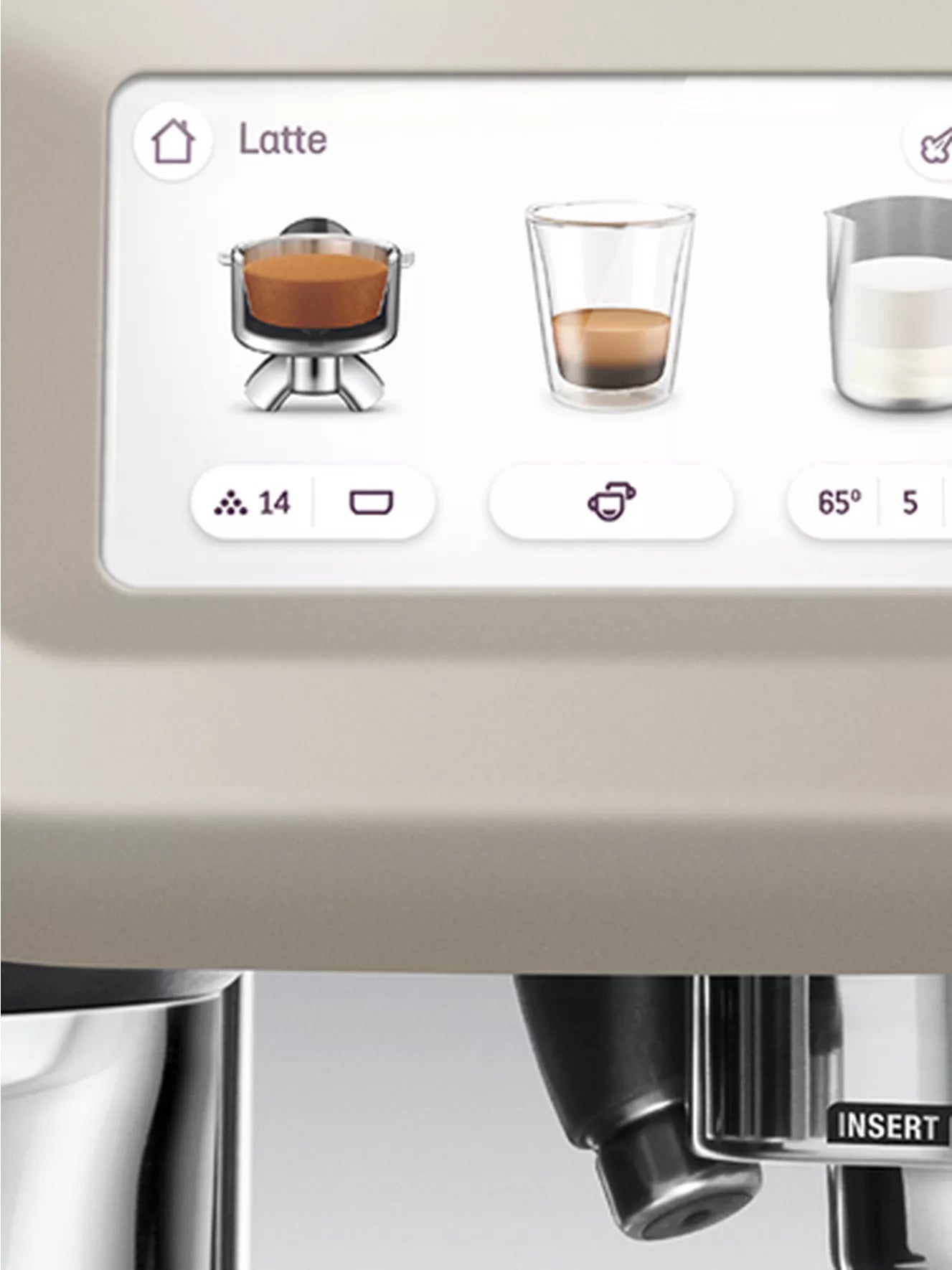 Sage espresso machines incorporate the 4 keys formula used by professional café machines. Designed to use the right dose of freshly ground beans, ensure precise temperature control, optimal water pressure and create true microfoam milk essential for latte art. You’re only a touch away.