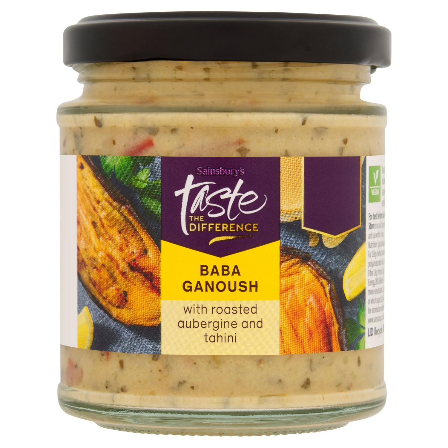 Sainsbury's Taste The Difference Baba Ganoush is a premium spread crafted from roasted aubergine and sesame seed paste. This dip delivers a rich, smoky flavour profile enhanced by fresh lemon juice. It is an ideal accompaniment for mezze platters or fresh bread.