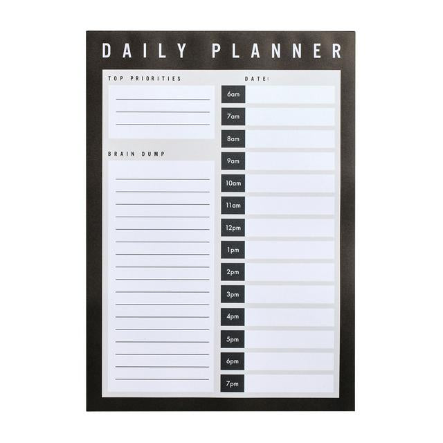 Stay organised and on track through demanding schedules with this bold black A4 daily planner from Sainsburys Home. This functional pad is designed to help you map out daily schedules, document critical top priorities, and provide space for necessary brain dumping. It ensures you can methodically manage tasks across 70 dedicated days.