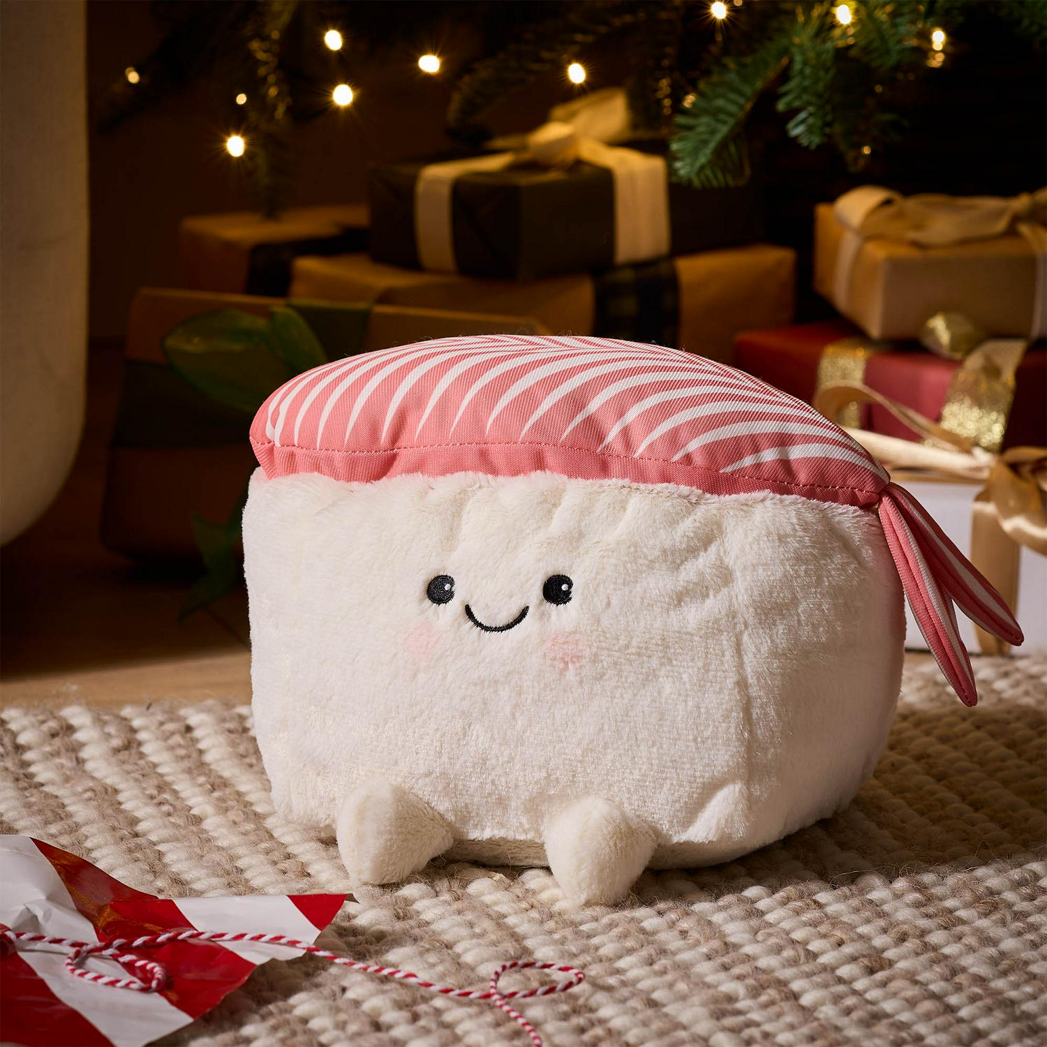 This novelty plush is shaped like sushi for a fun way to warm up before bed. It contains a special natural filling that can be heated gently in the microwave, acting as a unique scented hot water bottle.