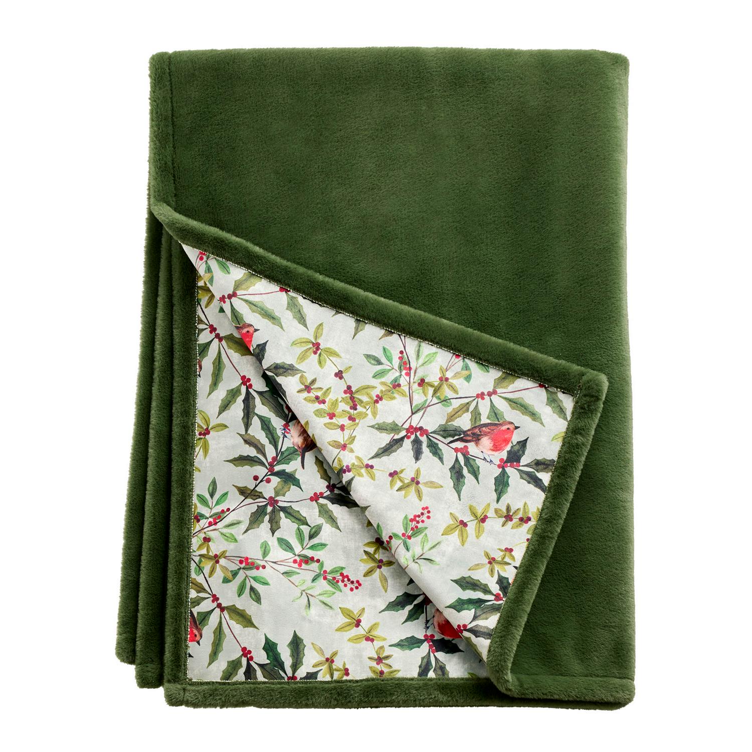 Introduce festive charm to your interior space using this generously sized, soft velvet throw. It showcases detailed nature imagery on one face, complemented by a solid, deep green backing for versatility. This item is crafted thoughtfully using sustainable materials for everyday comfort.