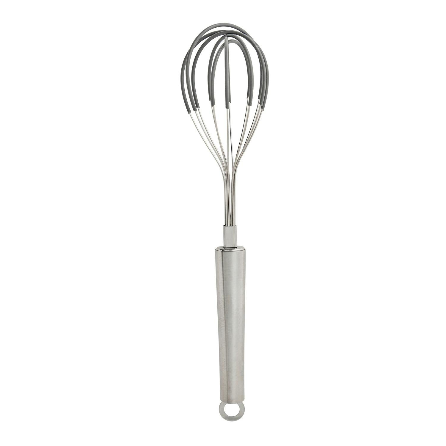 Read MoreWhip up a storm in the kitchen with this large whisk. Made from stainless steel, it’ll be easy to beat eggs, stir sauces, whip cream and so much more. And it’s designed with silicone tips for easy cleaning and non-scratch flexibility.