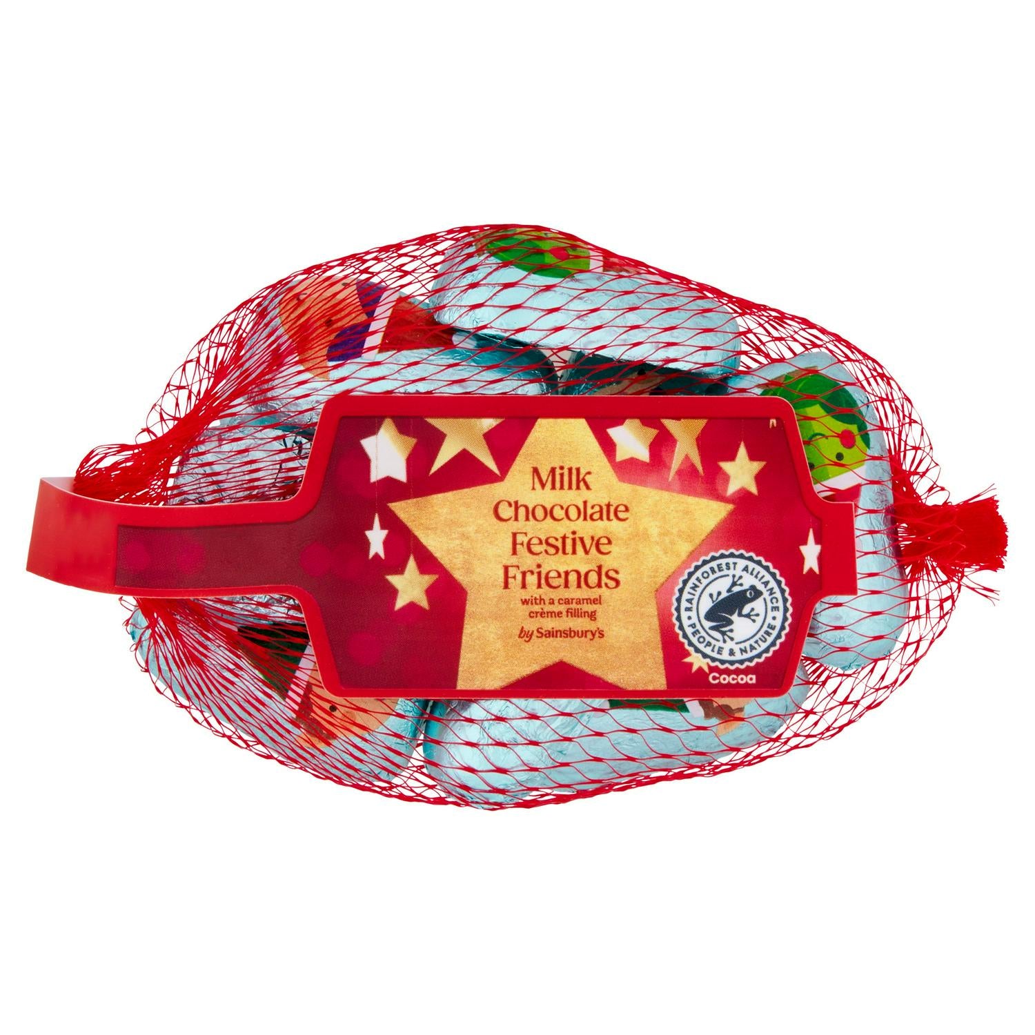 Sainsbury's presents these delightful Milk Chocolate Festive Friends, perfectly portioned for sharing during the holiday season. Each charming piece combines smooth milk chocolate with a sweet caramel flavour crème centre, offering an indulgent textural experience.