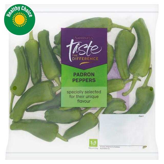 Product details Description Padron Peppers Class I Specially selected for their unique flavour Nutrition Table of Nutritional Information Typical values (as sold) 100g contains A serving contains % based on RI for Average Adult Energy 82kJ 66kJ 1% 20kcal 16kcal 1% Fat <0.5g <0.5g <1% Saturates <0.5g <0.5g <1% Carbohydrate... Read More