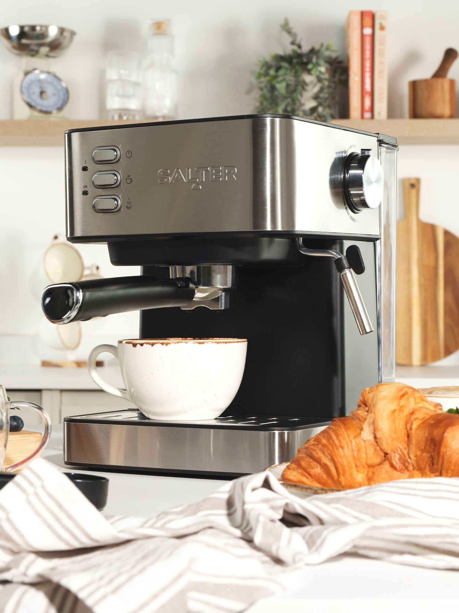 Designed for true espresso aficionados, this manual espresso machine from Salter ensures every coffee is a masterpiece. Equipped with a 15-bar Italian pressure pump to extract rich flavours from ground coffee, you can be your own barista! Use the included milk frothing wand to craft creamy lattes and foamy cappuccinos... Read More