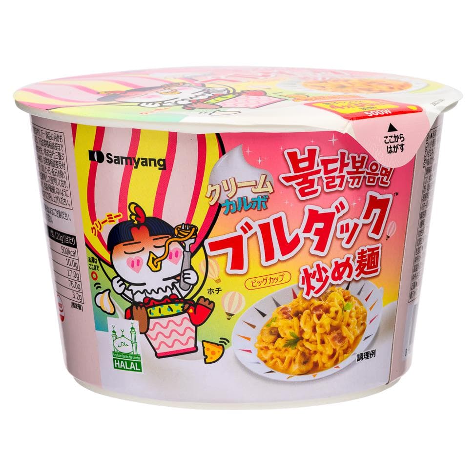 Indulge in a unique culinary experience with Samyang Buldak Hot Chicken Flavour Ramen Big Bowl (Creamy Carbonara) JPN Version – a bigger bowl of fiery deliciousness with a creamy twist!