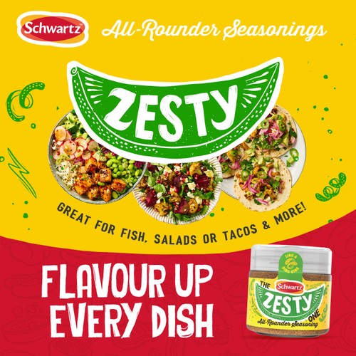 Schwartz All Rounder Zesty Seasoning is a versatile blend designed to enhance the flavour of various dishes. It combines key ingredients like lemon peel, paprika, and onion to deliver a bright, zingy taste to anything you prepare.