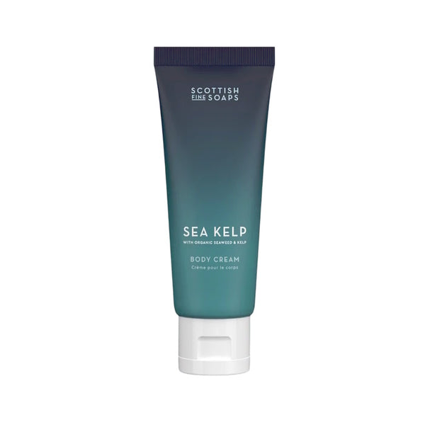 Sea Kelp fragrance with marine minerals Vegan-friendly and made in Scotland Nourishes and hydrates your skin Fresh ocean-inspired scent experience Ethically crafted with premium ingredients Experience the essence of nature with Scottish Fine Soaps, infused with the revitalising Sea Kelp fragrance, complemented by the fresh, coastal notes of nutrient-rich seaweed and minerals. This collection brings the crisp, invigorating scents of Scotland’s shoreline directly to your self-care routine, enveloping your senses in a refreshing, ocean-inspired aroma. Body Cream 75ml: Hydrating body cream with hyaluronic acid, shea butter, jojoba oil and nutrient rich Scottish seaweed extracts to soften and refresh skin with a coastal fragrance. Whether you are treating yourself or searching for the perfect gift, each piece offers a pampering moment with the signature, long-lasting fragrance. Each product is crafted with premium ingredients to nourish and hydrate your skin, leaving it feeling soft, refreshed, and beautifully scented. Vegan-friendly and made in Scotland, these products are a perfect addition to any skincare routine. Let the fresh, revitalising aroma of Sea Kelp transport you to the rugged beauty of Scotland’s coast.