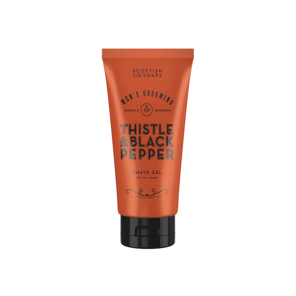 Contains 150ml Enriched with aloe vera and vitamin E Shield your skin from irritation Non-foaming formula Soothe and refresh your skin Vegan-friendly Made in Scotland Shield your skin from irritation with the Thistle & Black Pepper Shave Gel. This non-foaming formula ensures a precise and smooth shave, enriched with milk thistle extract to moisturise and aloe vera and vitamin E to soothe and refresh your skin. Infused with the bold Thistle & Black Pepper fragrance, it’s the perfect addition to your grooming routine for a comfortable and refined shaving experience. Vegan-friendly and made in Scotland, this product is a perfect addition to any shaving routine.