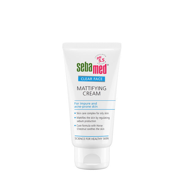 Sebamed Clear Face Mattifying Cream reduces the skin's oily shine and the formation of pimples, blackheads and skin impurities with a pH value of 5.5. The special care complex, helps to reduce sebum production in oily areas, whilst also helping to reduce irritation by soothing and moisturising the skin. Well suited for all types of acne prone skin and oily skin. For oily, impure and acne-prone skin. Free from oils and emulsifiers. Non greasy and fast absorbing. Aloe vera and hyaluronic acid moisturize the skin. Horse chestnut reduces irritation and soothes the skin. The pH 5.5 promotes the natural barrier function of the skin's acid mantle. Controls sebum production and, when used regularly, effectively helps to prevent skin impurities. A special skin care complex reduces the amount of sebum produced in oily areas of the face. Mattifies the skin by regulating sebum production which reduces the skin's oily shine and improves the skin's appearance. Dermatologically and clinically tested.