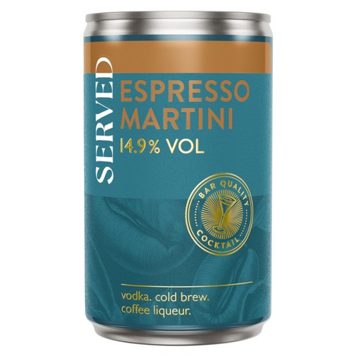 Read MoreRich, smooth, bitter-sweet. Bar-quality Espresso Martini, full-strength at 14.9% ABV, made with SERVED Founders Reserve four-times distilled premium French vodka, cold brew coffee and coffee liqueur. Shake, pour and serve. 100% Natural. Vegan. Gluten-free Please drink responsibly: The UK Chief Medical Offers recommend adults do not regularly drink more than 14 units per week