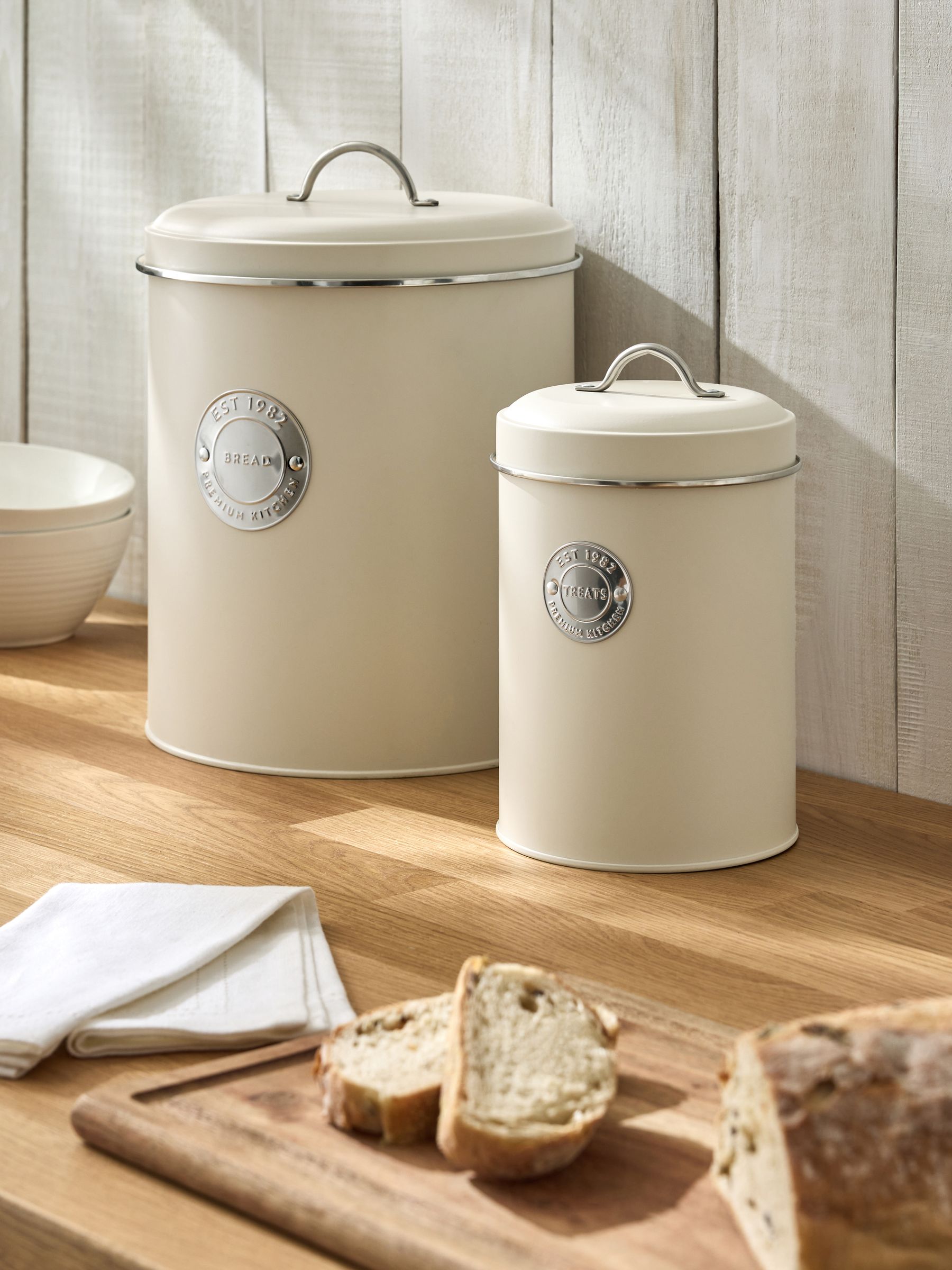 Maintain a tidy and organized worktop with this set of two storage tins. Perfect for preserving the freshness of bread and treats.