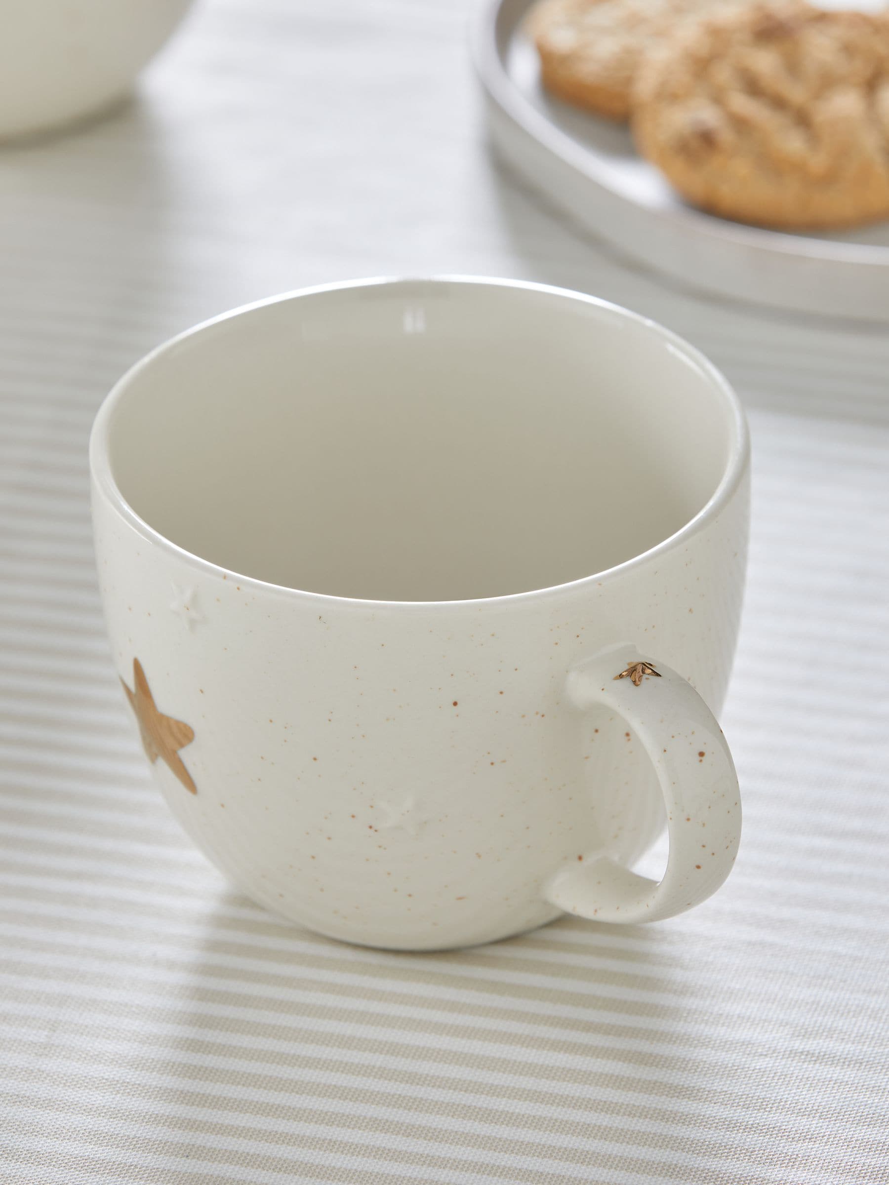 Finished off with a beautiful speckle glaze and embossed stars around the mugs adding a subtle decorative finish.