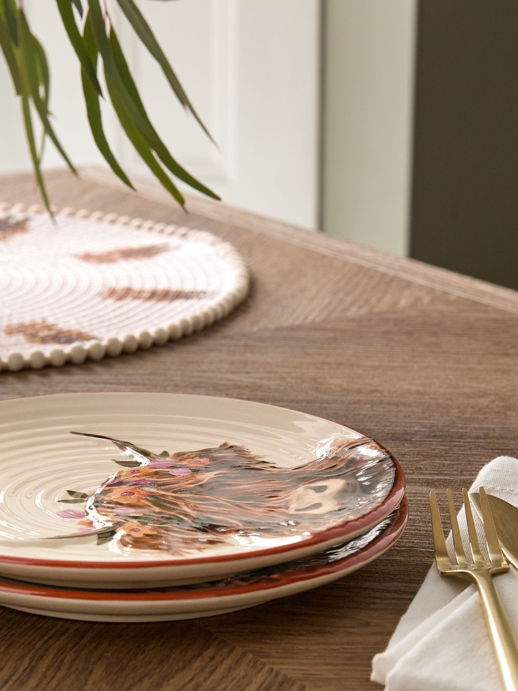 Set of 2 Natural Hamish The Highland Cow Side Plates