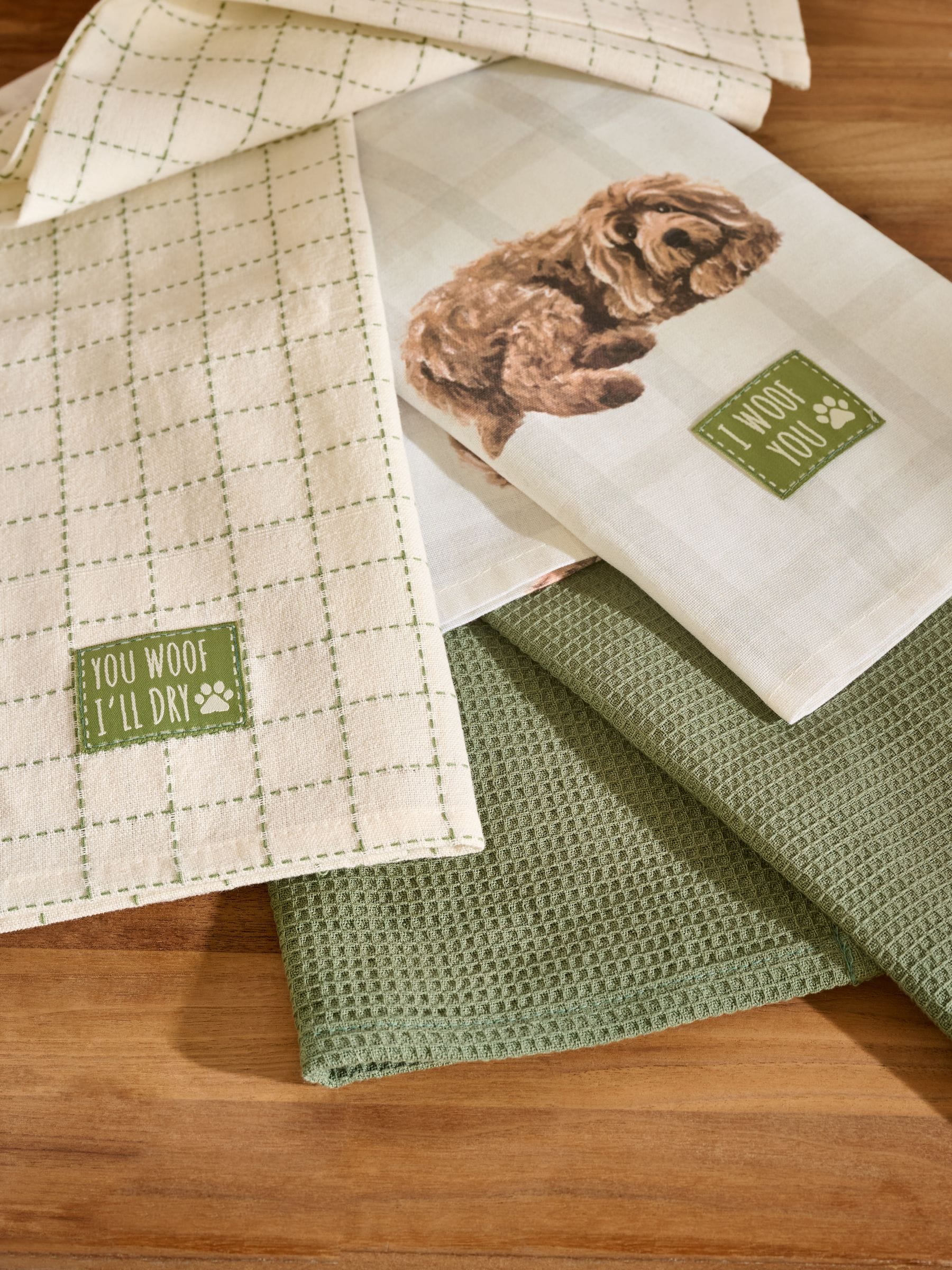 Set of 3 Natural Louie the Labradoodle Tea Towels