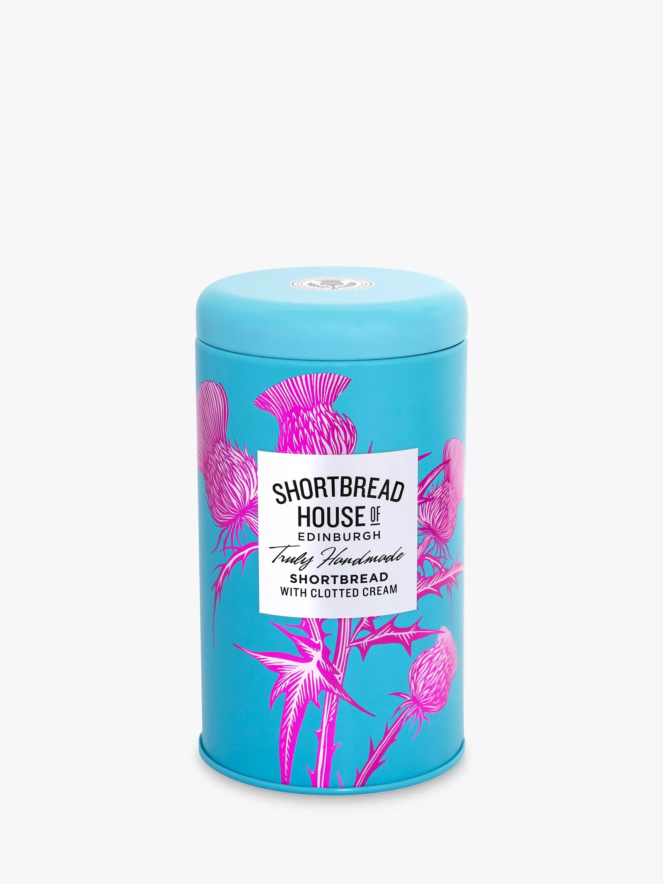 This stunning tin showcases Scotland's national flower, the thistle and contains approximately seven individually hand cut shortbread biscuits. Handmade by a small team of skilled bakers in Edinburgh, made even more indulgent with the addition of clotted cream. An all butter shortbread recipe using only the finest ingredients.