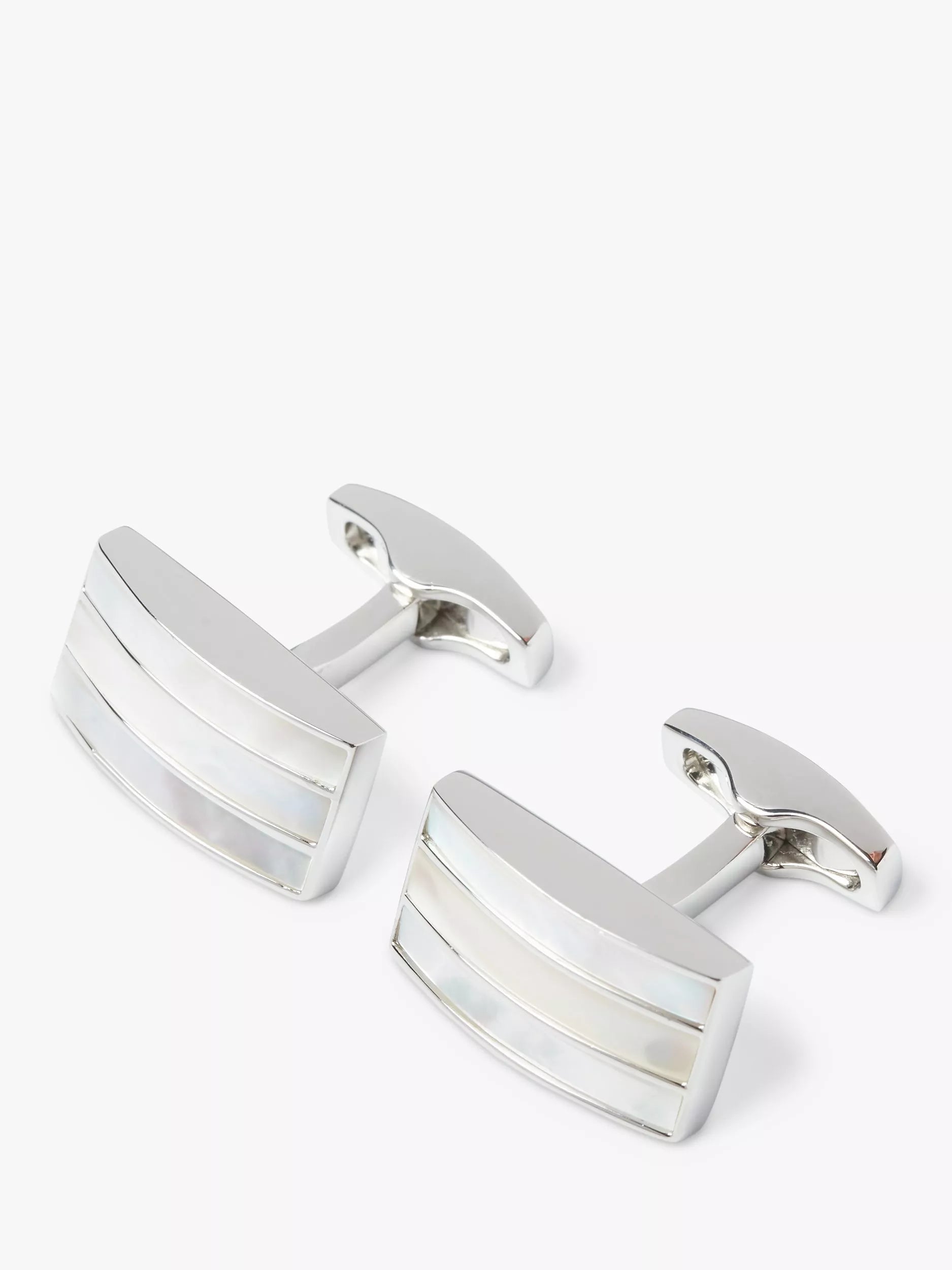 Luxurious Mother of Pearl cufflinks from Simon Carter, featuring a rhodium-plated frame inlaid with iridescent white mother of pearl and completed with an easy to use swivel back fixing.
