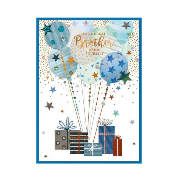 Product Information material card design balloons confetti present stars text occasion birthday card recipient husband