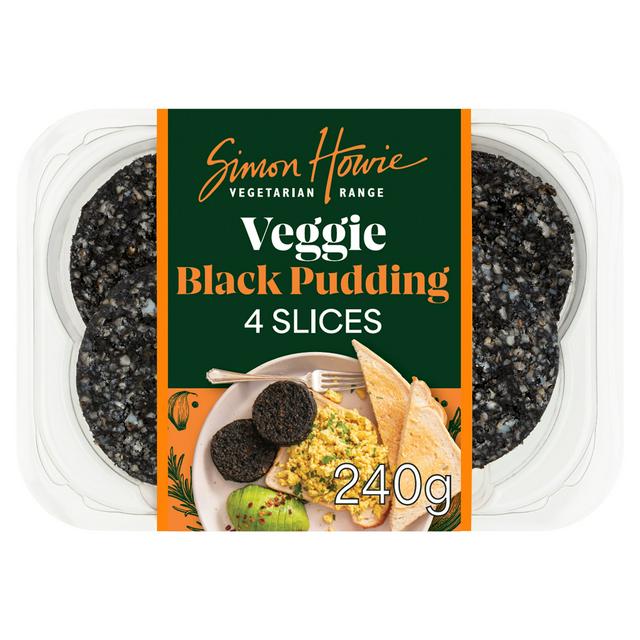 This is a plant-based alternative to traditional black pudding, crafted by Simon Howie. It offers a delicious flavour profile derived from a blend of oats, onions, and spices. The product is officially certified as Vegan by the Vegetarian Society.