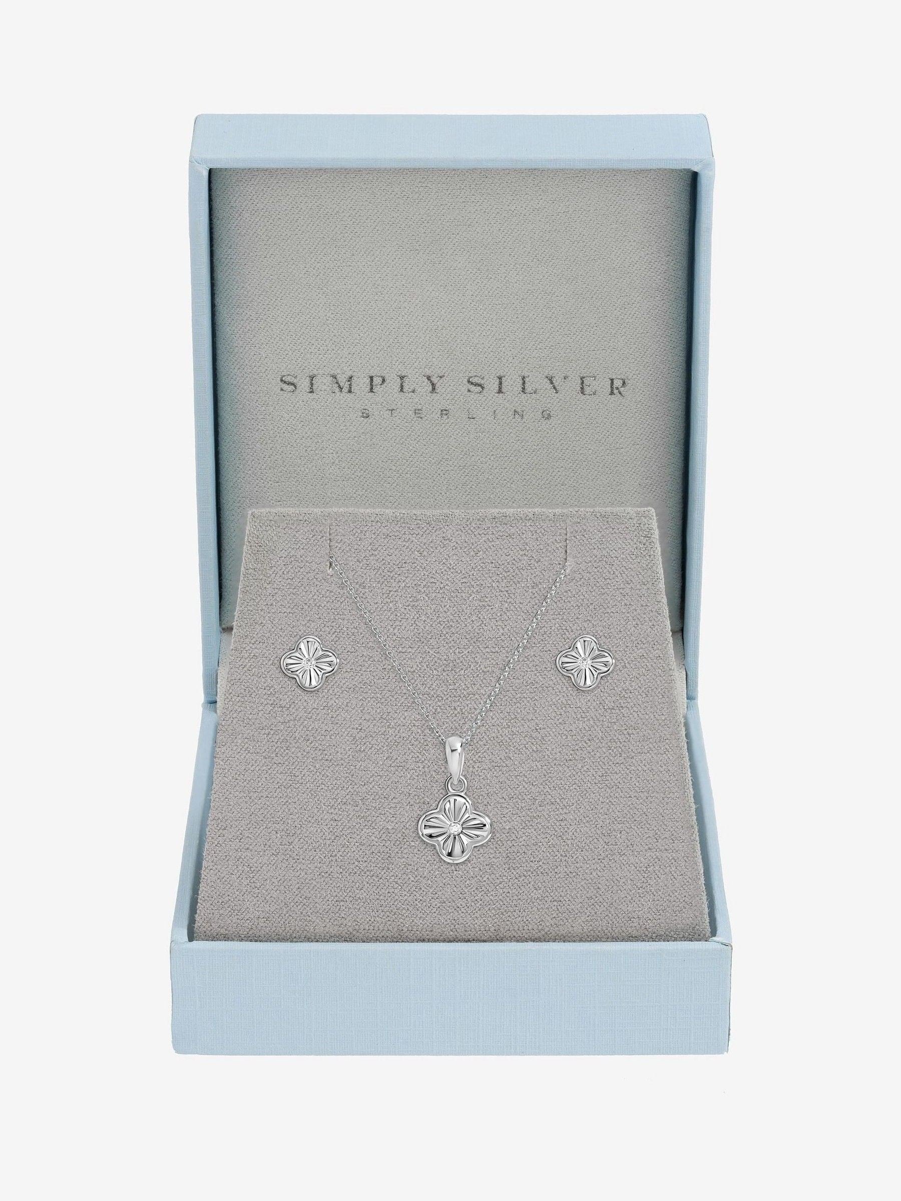 Our Simply Silver 925 Polished Diamond Cut Clover Set features a matching pendant and stud earrings, each crafted in Sterling Silver 925 with expertly diamond-cut surfaces that catch and reflect light for a dazzling effect. The clover design adds a timeless touch of elegance and subtle symbolism. Packaged in a beautiful Snapshut gift box, this set offers a beautifully wrapped surprise for yourself or a loved one. Fastening: Lobster Clasp, Post and Bullet Back. Width dimension: 8mm. Length dimension: 406mm. Material: Sterling Silver 925.