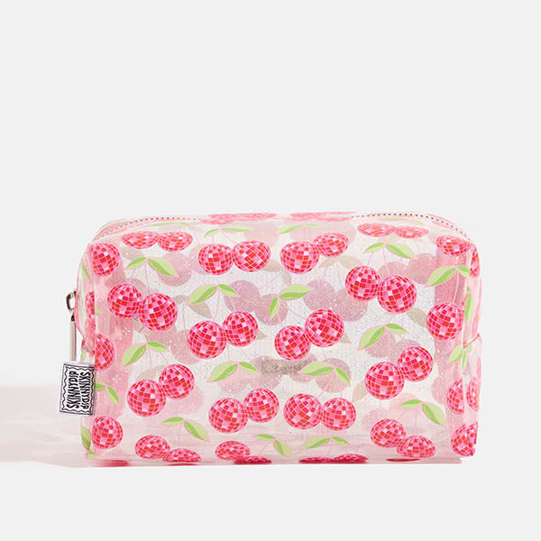 Add some sparkle and fun to your beauty routine with the Skinnydip Disco Cherries Makeup Bag. Featuring a bold, glittering cherry design, this eye-catching makeup bag is perfect for keeping your beauty essentials organized in style.