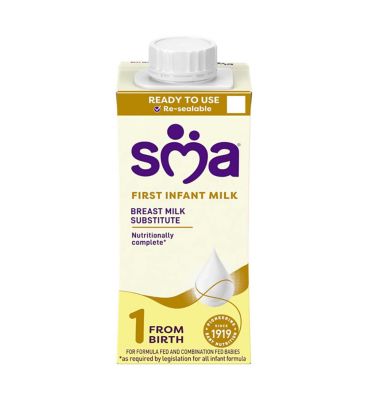 SMA PRO First Infant Milk is a Stage 1, ready-to-drink formula designed for newborns when breastfeeding is not possible. This liquid milk is a nutritionally complete breast milk substitute, providing essential sustenance from birth onwards. Its convenient format means preparation time is eliminated for busy parents.