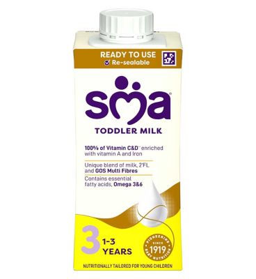 • Specifically formulated as SMA PRO Growing Up Milk for children aged 1 to 3 years.