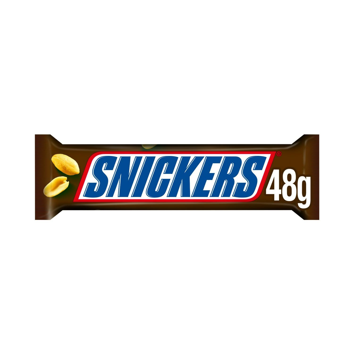 Indulge in the classic combination of textures and flavours found in this 48g Snickers chocolate snack bar. This confection features layers of sweet caramel, soft nougat, and crunchy peanuts all enrobed in smooth milk chocolate.