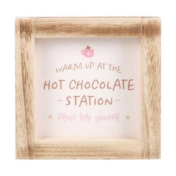 Material: MDF. Design: Coffee Cup, Cookies, Printed, Stars, Text. Framed. Height: 15cm. Width: 15cm. Packaging: Hang Tag. Depth: 2.3cm.