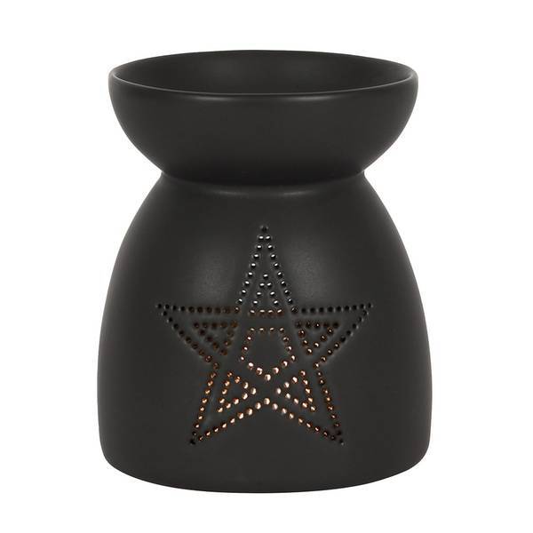 Material: Ceramic. Design: Cut Out, Pentagram. Finish: Matte. Height: 10cm. Width: 9cm. Suitable for: Scented Oil, Wax Melts. Packaging: Boxed.