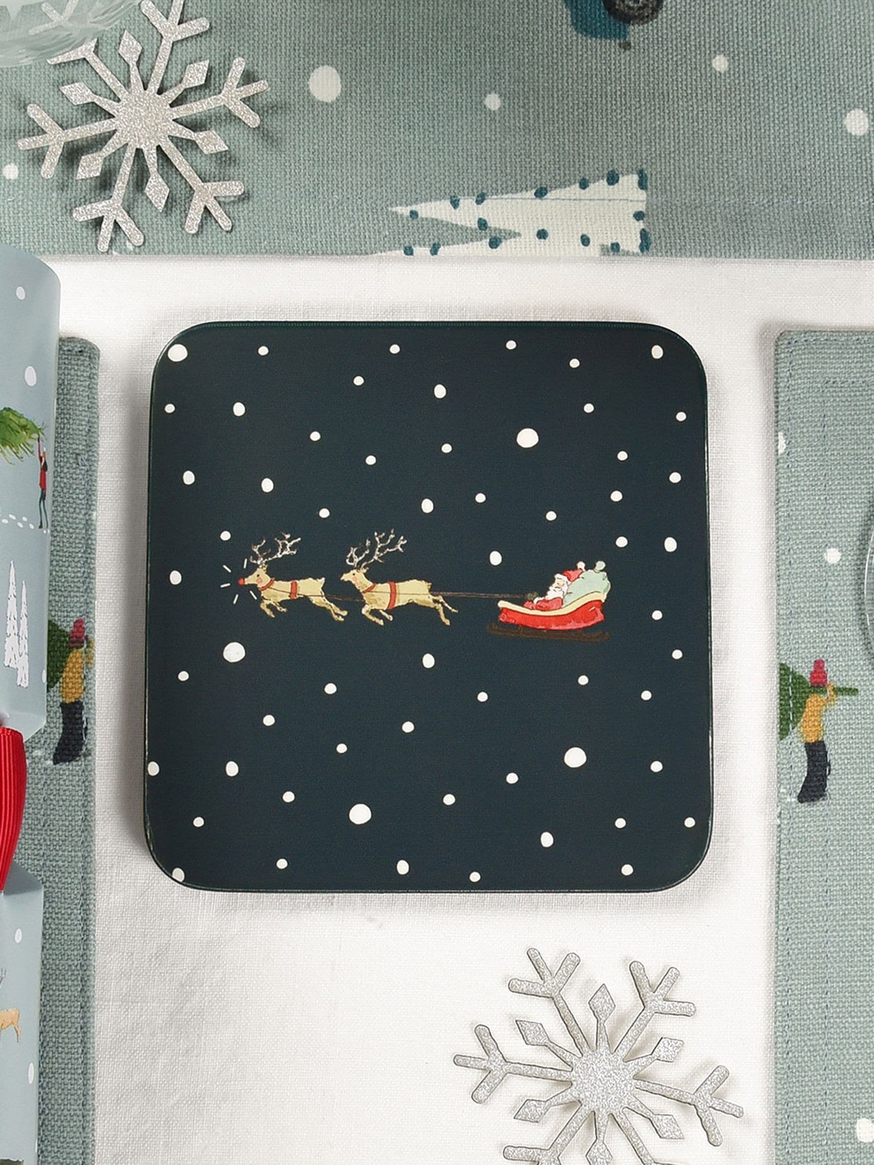 Sophie Allport Midnight Blue Home for Christmas Coasters Set of 4