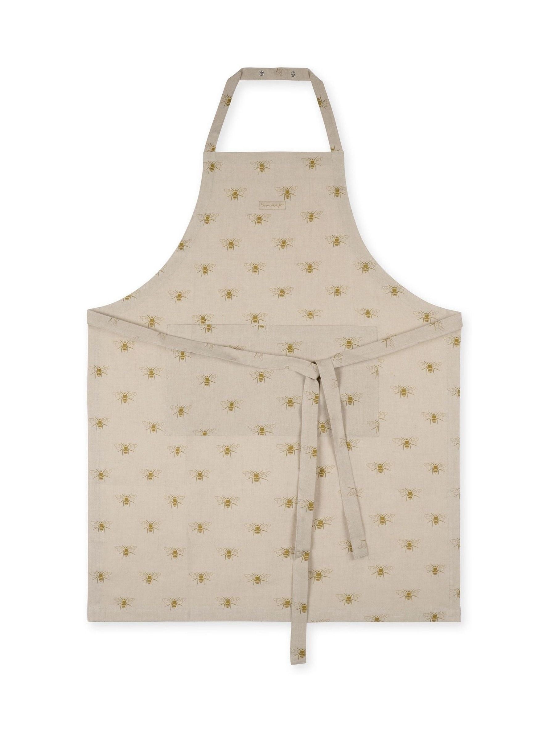 Embrace nature-inspired style in the kitchen with this beautifully crafted linen apron, featuring a charming bee print on a soft, neutral background. Designed for comfort and practicality, it includes an adjustable neck strap and a spacious front pocket. H 90 x W 72cm Made from 100% linen Adjustable neck strap Front pocket Due to the nature of the material, colour and pattern may vary slightly Coordinating items are available in the Bees collection