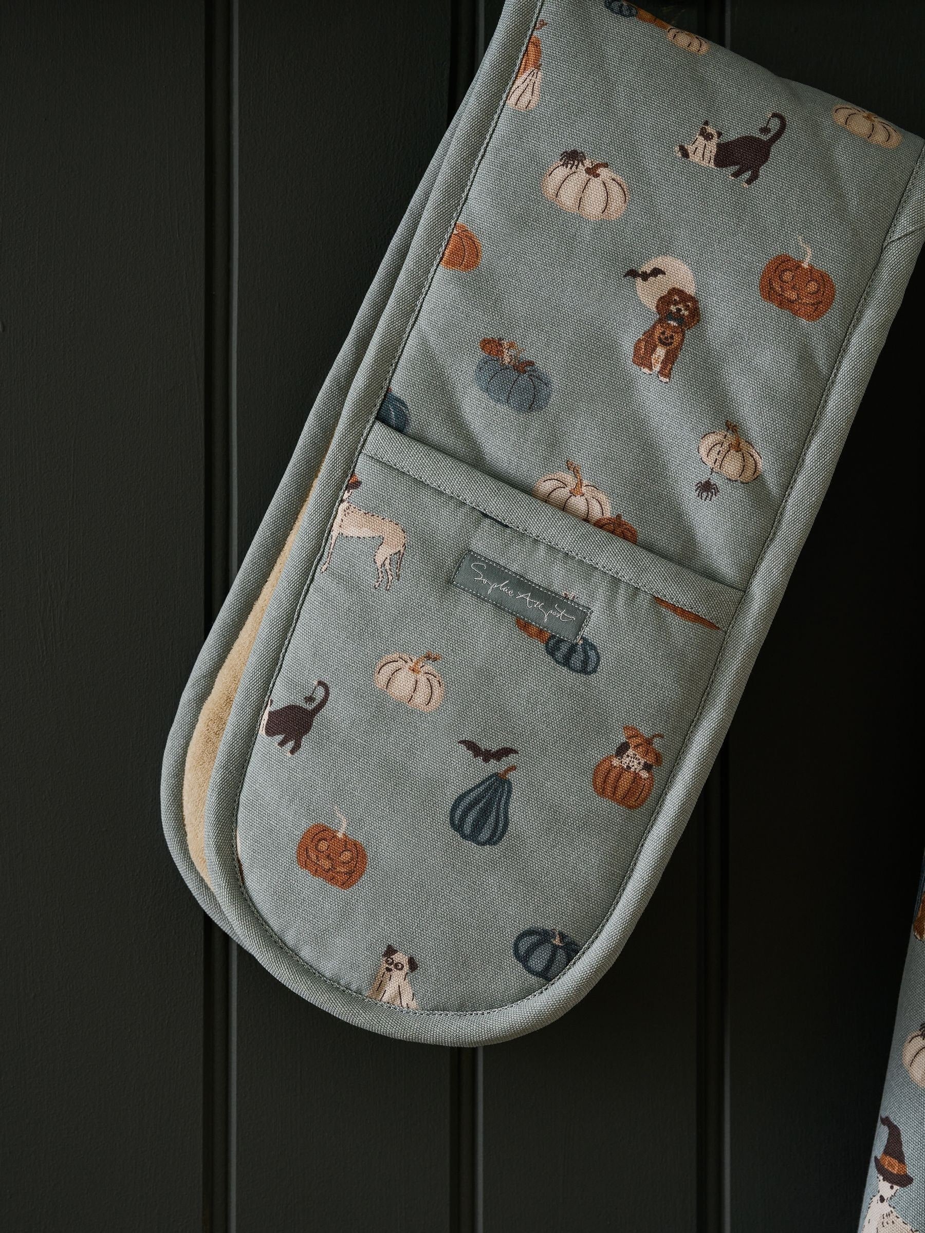 Sophie Allport Soft Teal Paws & Pumpkins Double Oven Gloves