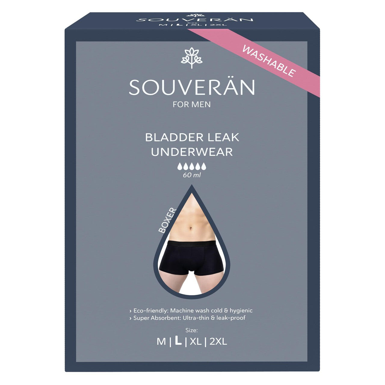 SOUVERAN, BOXER for MEN (Bladder Leak), Black, Size L