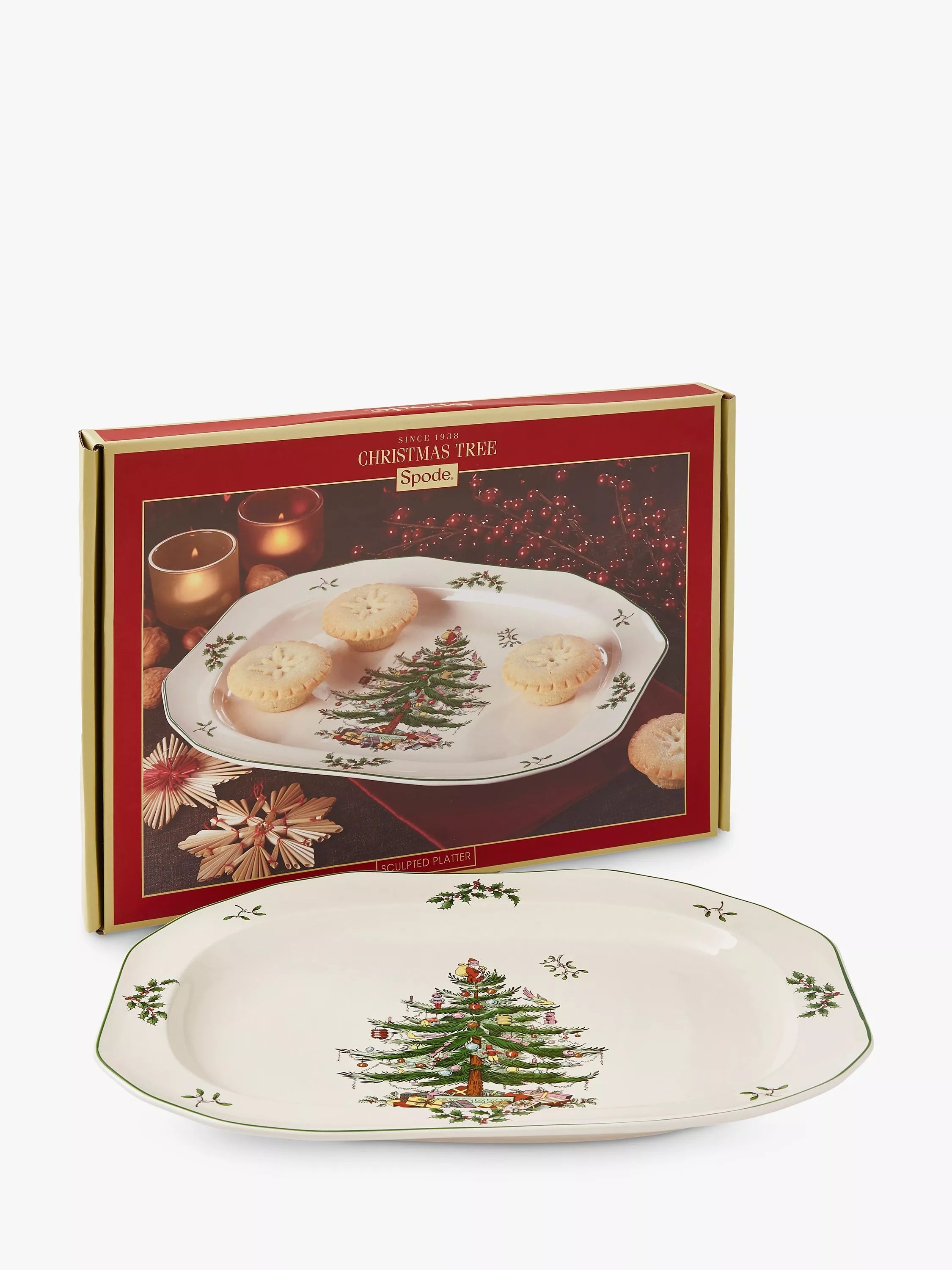 Introduced in 1938, the Christmas Tree collection from Spode is a seasonal favourite. This oblong serving plate from the range is made of stoneware and is dishwasher, microwave and freezer safe for use in the modern home.