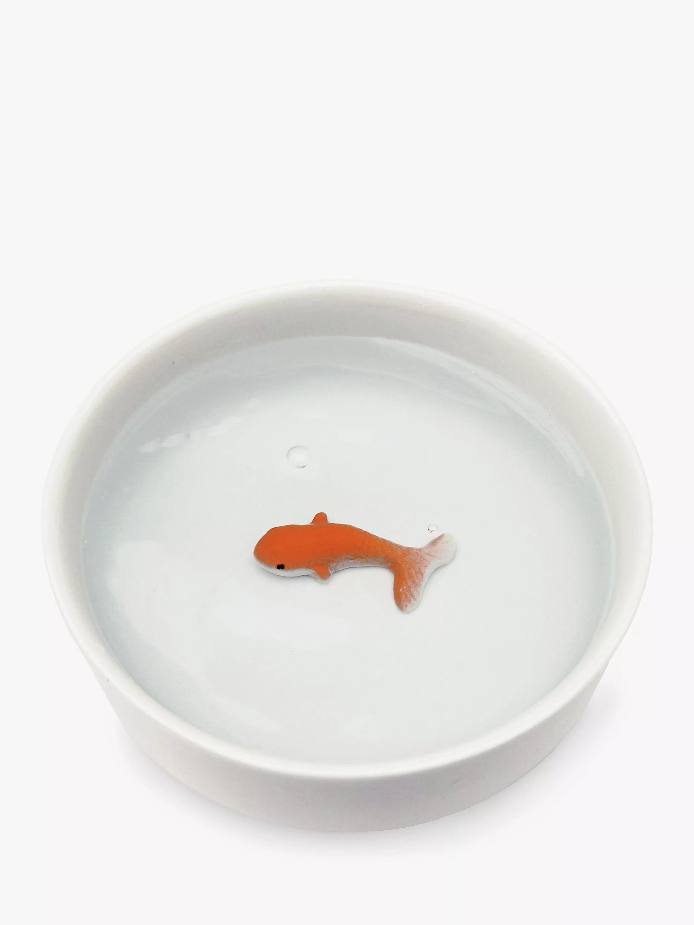 Fool your cat into thinking a real goldfish is swimming in their water bowl. The 3-dimensional, hand-painted ceramic goldfish sitting at the bottom of the dish will convince even the most canny cat that they have a surprise visitor. The perfect gift for pet-loving fun.