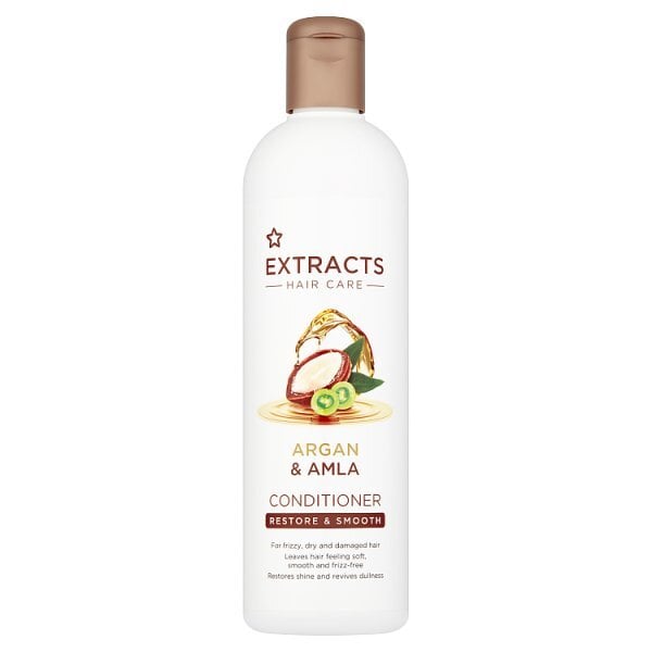 Read Moresuperdrug extracts restore smooth conditoner is formulated with exotic moroccan argan oil and nourishing amla extract to restore and smooth frizzy dry and damaged hair