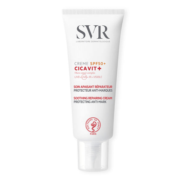 This SVR CICAVIT+ cream provides high-level sun protection specifically formulated for the repair of scars, grazes, and tattoos. It actively shields skin from damaging UVA, UVB, infrared, and visible light sources throughout the day.