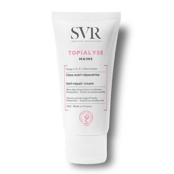 Lipid restoring, nourishing hand cream for extremely dry, damaged hands prone to flaking and atopic dermatitis. Soothes, repairs, relieves. Non-greasy