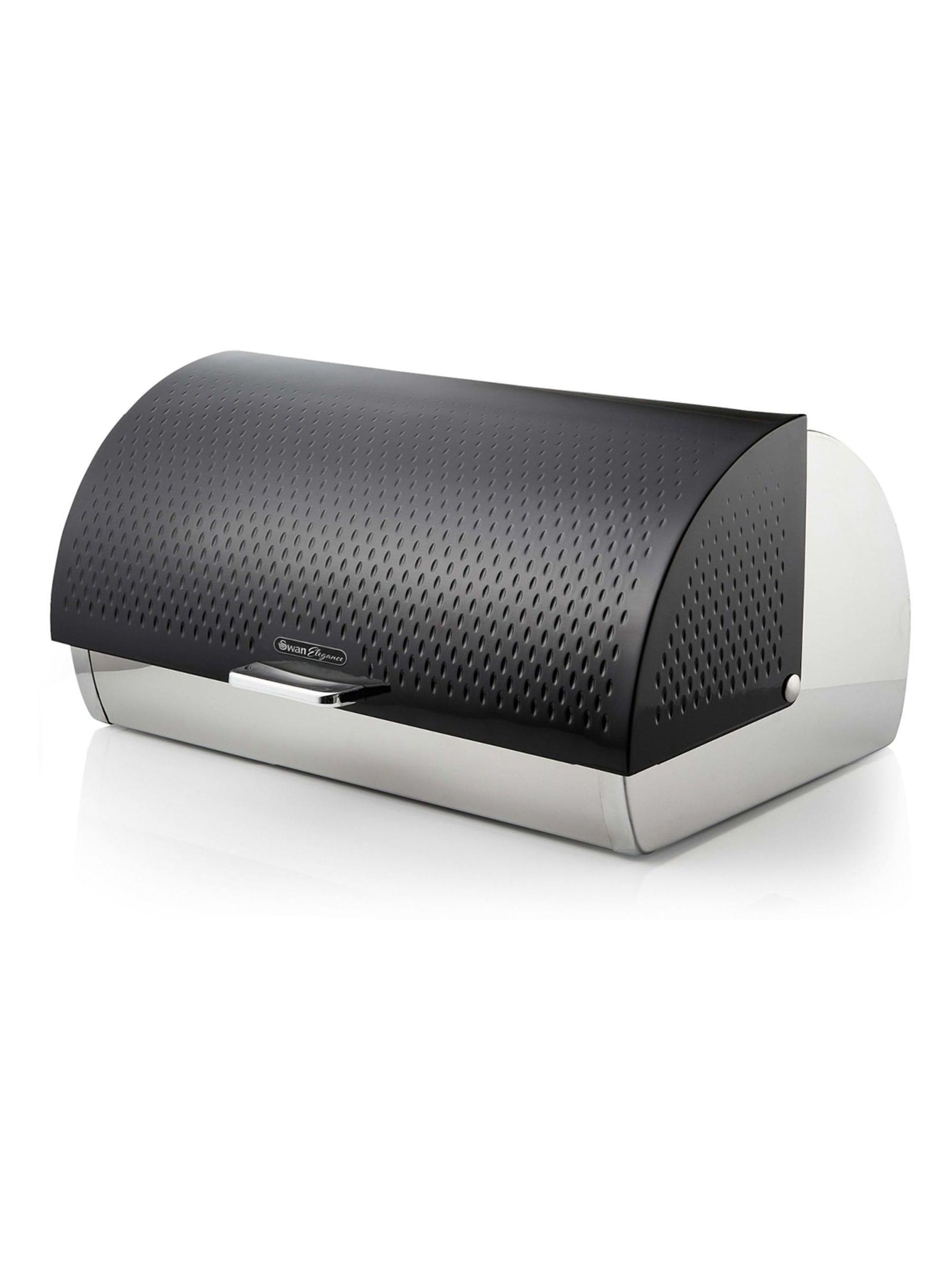 The Swan Elegance black bread bin is the ultimate storage solution to keep your baked goods fresh and easy to access on your kitchen countertop. Featuring a roll top lid with large bar handle, the bread bin is easy to open. The large 14 litre capacity means you can fit a variety of loaves, muffins, bagels, or crumpets at one time, which is perfect for those busy family homes. This large bread bin features ventilation holes at the back, which regulate moisture and facilitates airflow to prevent stale odours and keep your baked goods fresh for longer. The robust design is highly durable for everyday use, while the non-slip feet provide stability on your worktop. It’s also easy to maintain, requiring a simple wipe with a damp cloth to clean. This Swan bread bin forms part of the Swan Elegance collection, which features a distinctive design that is perfect if you are looking to freshen up your kitchen décor. EASY ROLL TOP LID: Designed for convenience, the large handle lets you roll up the lid to easily gain access to your baked goods. LARGE STORAGE CAPACITY: This large bread bin features a modern design with a spacious 14 litre capacity. You can fit a loaf, crumpets, and muffins at the same time. Perfect for busy households. ROBUST AND STABLE DESIGN: The mirror finished body is robust and provides added durability for everyday use. Also features a non-slip base for stability on your kitchen worktop. VENTILATED FOR FRESHNESS: Holes at the back of the bread bin provide ventilation to regulate moisture and facilitate airflow to help keep your baked goods fresh for longer. 3 YEAR GUARANTEE: This bread bin comes with a 1 year manufacturer’s guarantee with an additional 2 years when you register the product.