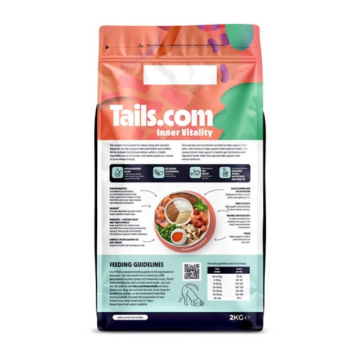 We created tails.com in 2013 with a dream - to change the world of pet food for good, starting with tailored recipes individually formulated for each and every dog. We've taken everything we've learned since then to create tails.com Inner Vitality, a range tailored to your pet's age, size and lifestyle. Every recipe is developed with our Animal Nutritionist and our Head Vet Sean McCormack BSc (Hons), MVB, MRCVS. Great tasting food, packed with specific ingredients to support digestion, bones, skin, coat and more. It's all about helping them live a long and active life by your side.