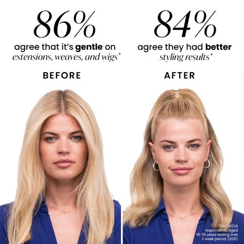With unique bottle-shaped teeth, it gently brushes out curls, maintains and blends hair extensions, clip-ins and weaves and leaves your hair with a smooth and shiny finish. Its thin and comfortable handle gives you maximum control when creating chic updos or adding volume and texture.