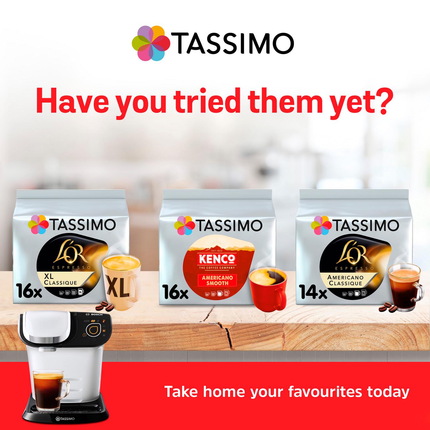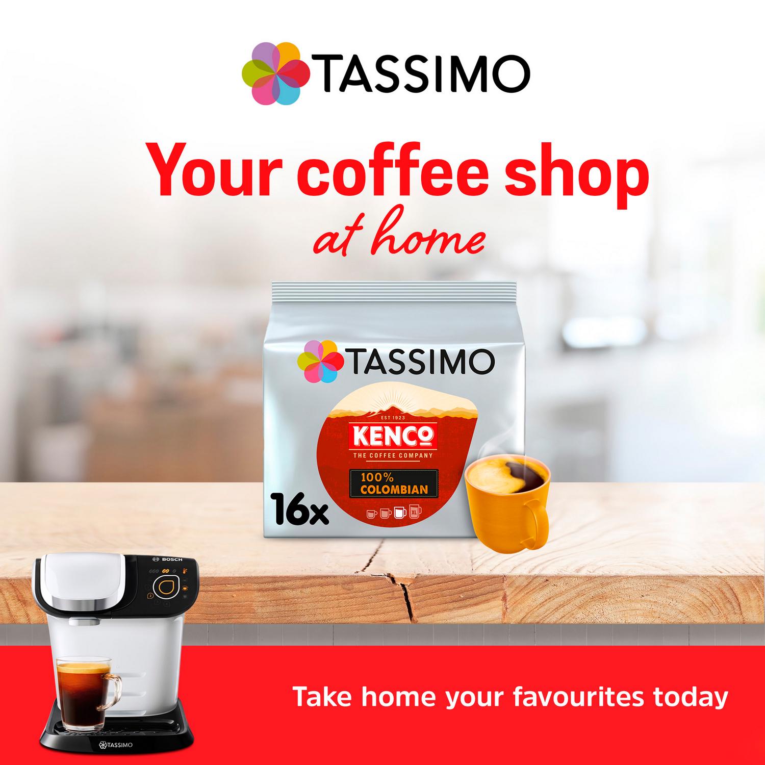 This velvety smooth 100% Colombian coffee from Kenco was created to tantalise the senses. You’re guaranteed a rich, satisfying cup of coffee every time. Delivering the finest coffee since 1923, Kenco has been dedicated to creating quality flavours for you to savour. With a wide array of blends to choose from, Kenco expert coffee roasters ensure that everyone gets to enjoy a taste that's just right for them. Tassimo coffee machines use Intellibrew™ Technology that recognizes your pod at the touch of a button, adjusts to the perfect size, temperature and intensity to create a perfect drink for you to enjoy. Tassimo is the result of when great brewers and great drinks come together. Bringing joy into your everyday moments, Tassimo creates coffee you'll love.
