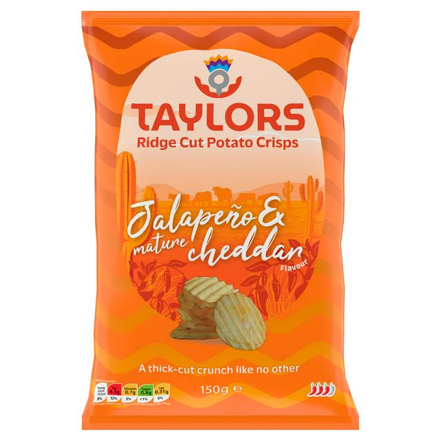 These Taylors crisps deliver a substantial crunch with every bite, thanks to their distinct ridge cut. The bold flavour pairing of spicy Jalapeño meets sharp Mature Cheddar for an intense snacking experience. This 150g bag is perfectly sized for sharing or enjoying over several occasions. The thick texture ensures the robust seasoning adheres well, maximising flavour impact.