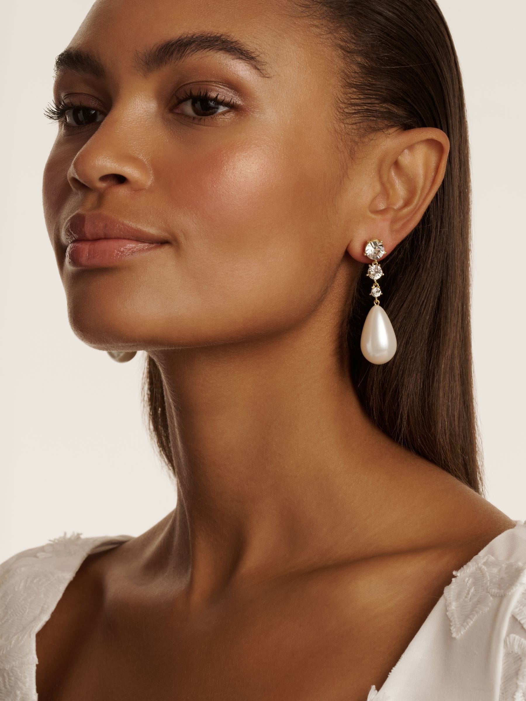 Ted Baker Gold Tone Pearsti: Statement Crystal Bead Drop Earrings