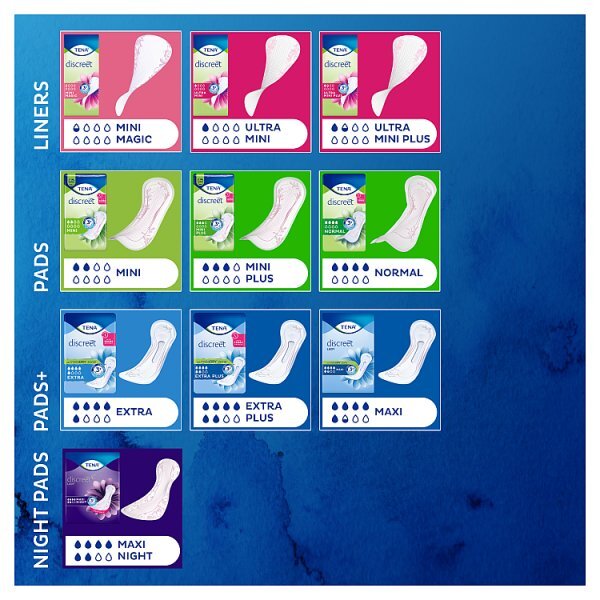 Experience dependable security with TENA Discreet Normal incontinence pads.